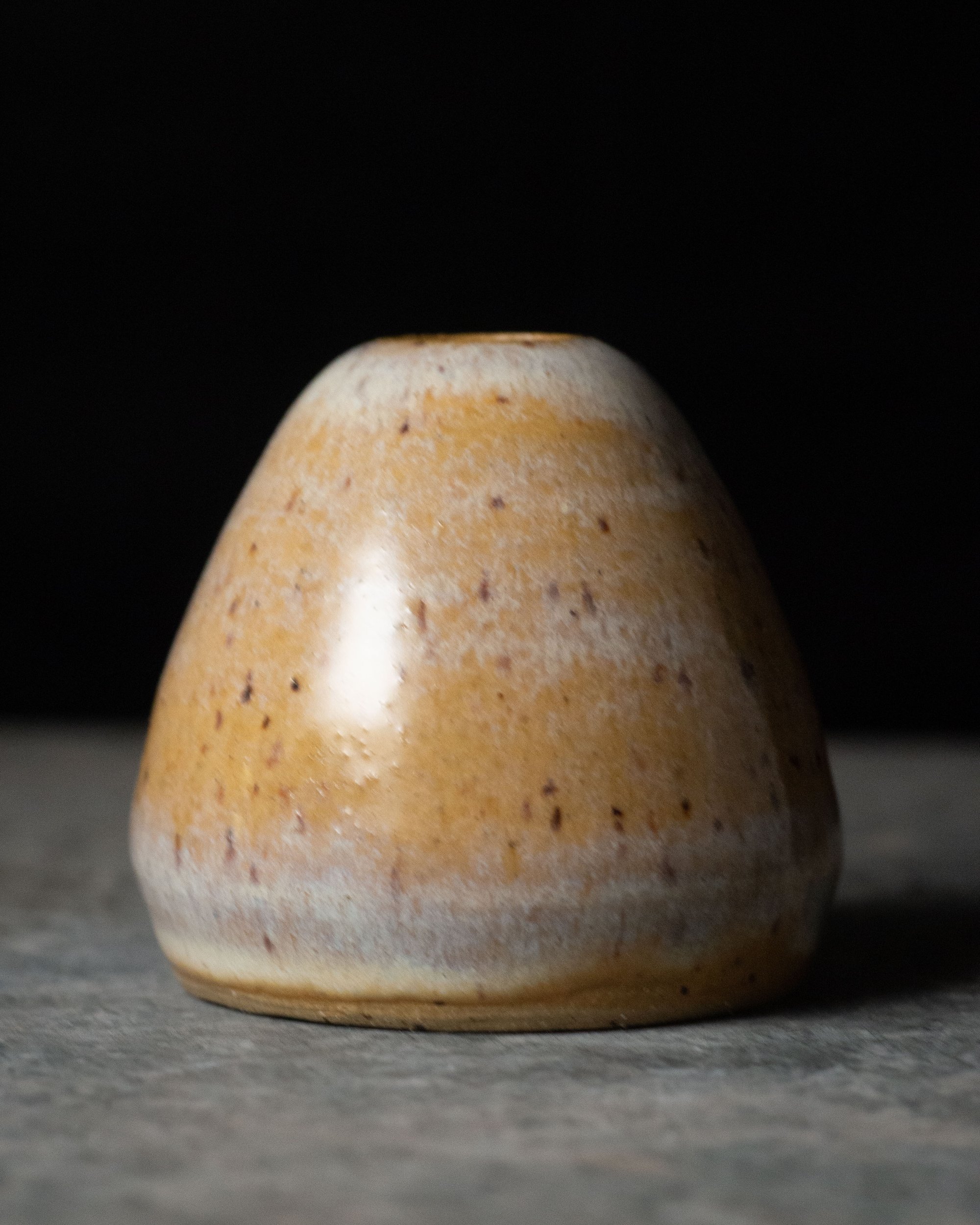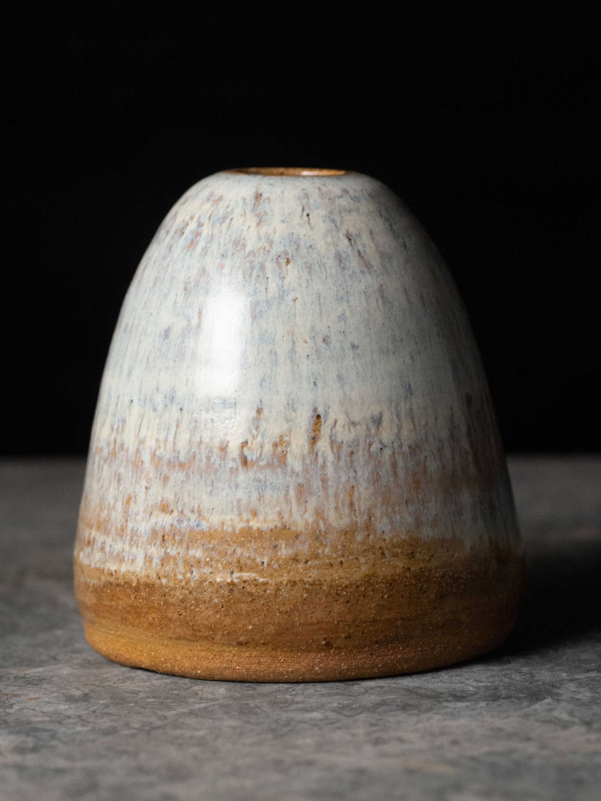 A set of bud vases with two different clay bodies, using the same runny-like glaze.