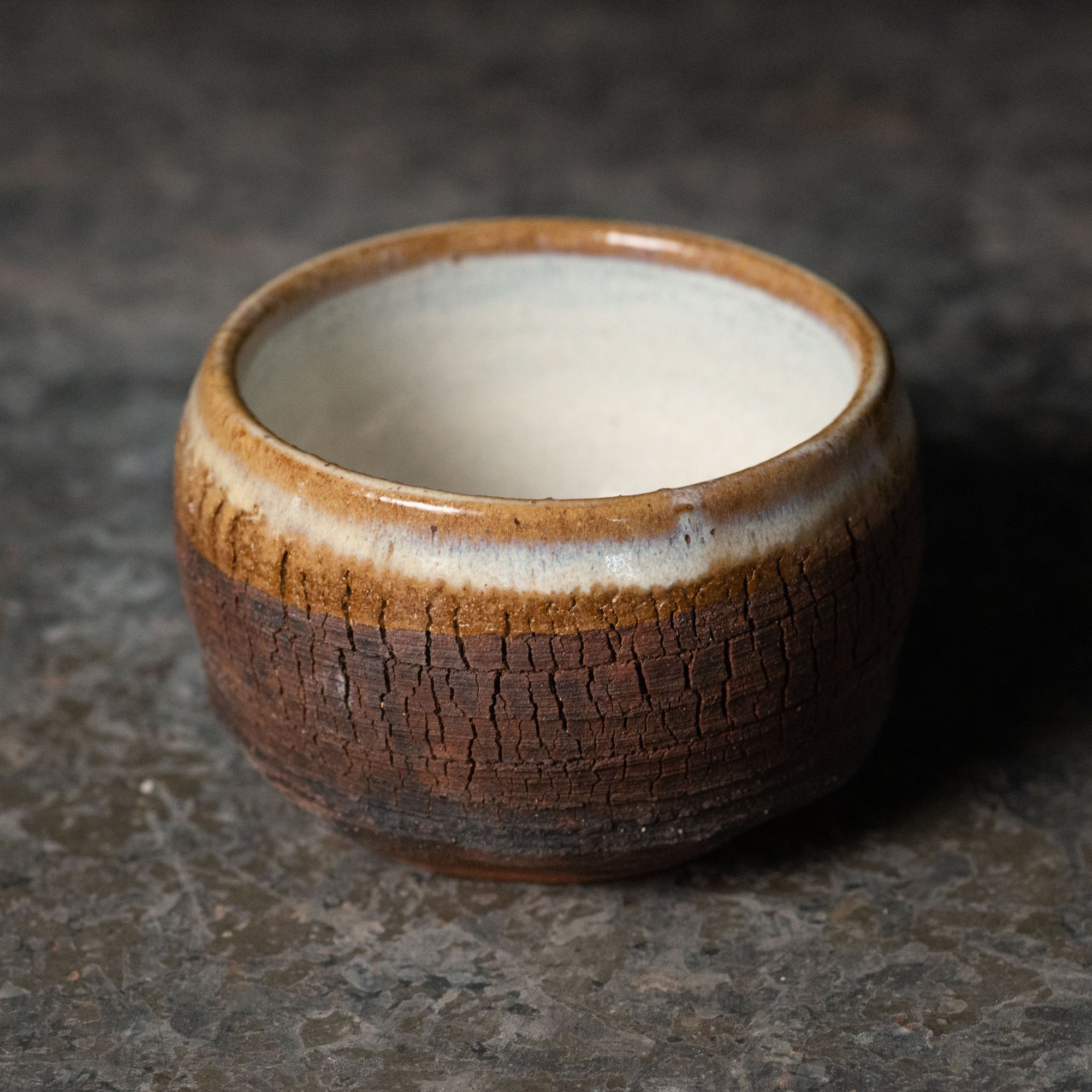 A short and stout handle-less mug. Either for beverages or decorative purposes.